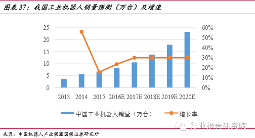 工業(yè)機器人的大規(guī)模使用,不僅可以助推企業(yè)轉(zhuǎn)型,而且也給智能制造業(yè)帶來巨大的市場需求。從全球來看,2014年工業(yè)機器人年銷售額約59億美元,銷量為22.5萬臺左右,比2013年增長 27%。我國是世界上增長最快的市場,前瞻產(chǎn)業(yè)研究院提供的數(shù)據(jù)顯示, 2015年工業(yè)機器人銷量高達66000臺,在2013 年的基礎(chǔ)上增長了 80%,繼續(xù)保持高速發(fā)展態(tài)勢。